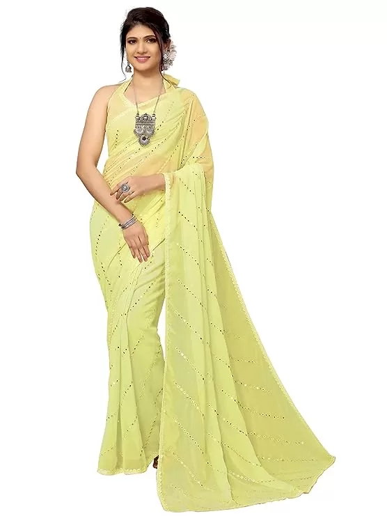 8. शीशा वर्क साड़ी: इस साड़ी में शीशे के कढ़ाई काम से बने पैटर्न दिलचस्पता होते हैं, जिनसे यह रौंगते हैं।