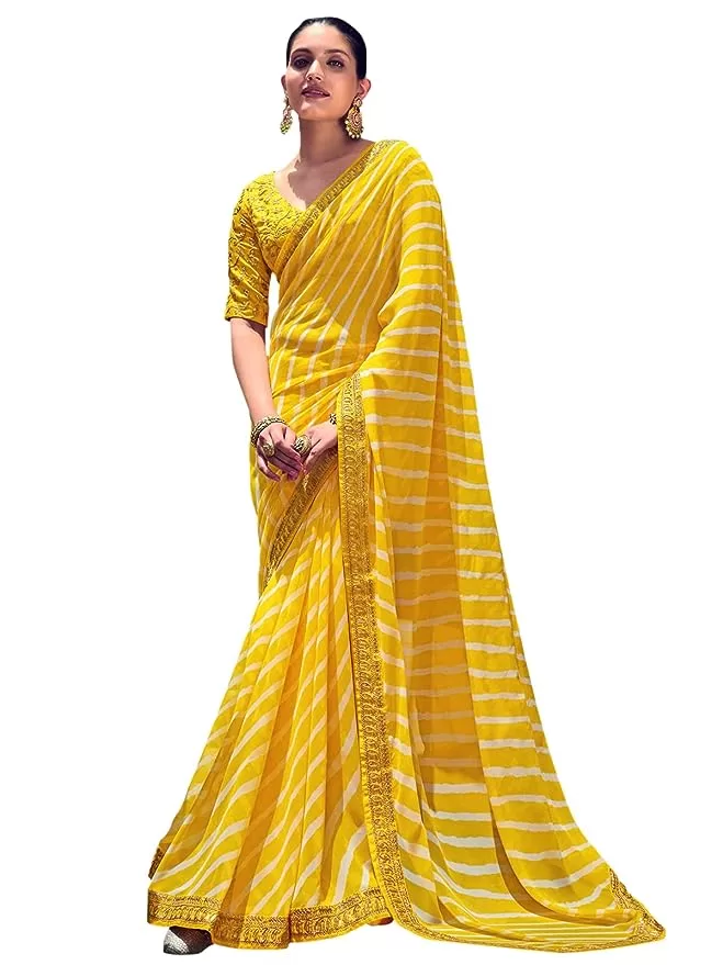 3. लेहरिया साड़ी: लेहरिया साड़ियाँ उनके गाढ़े रंगों और लीपटे पैटर्न के लिए प्रसिद्ध हैं। यह राजस्थान की संस्कृति से जुड़ी होती है और विशेष अवसरों पर पहनी जाती है।