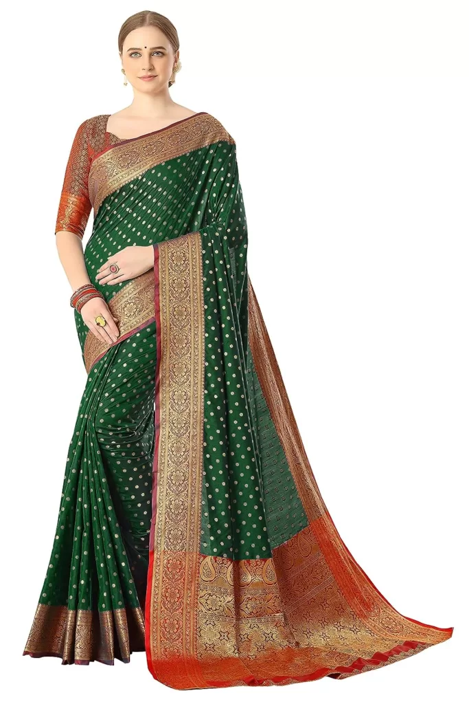 2. कांचीपुरम साड़ी: कांचीपुरम साड़ियाँ उनके सिल्क धागे और श्रृंगारी पैटर्न के लिए प्रसिद्ध हैं। ये साड़ियाँ भारतीय विवाहों में विशेष रूप से पहनी जाती हैं और उनके गाढ़े रंग और विस्तारित डिज़ाइन उन्हें अलग बनाते हैं।