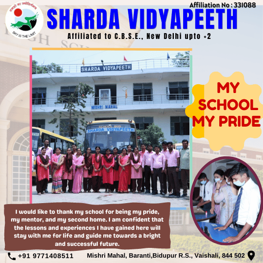 यदि आप वैशाली जिले में रहते हैं और अपने बच्चों की शिक्षा के लिए एक अच्छे स्कूल की तलाश में हैं, तो शारदा विद्यापीठ स्कूल एक बहुत ही अच्छा विकल्प हो सकता है।