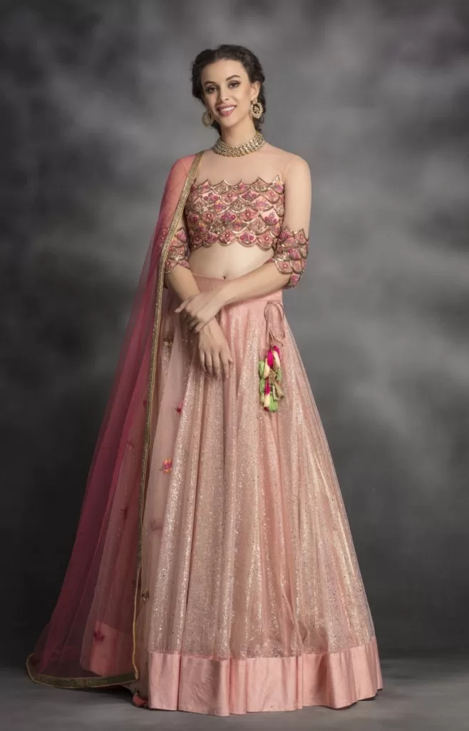 लहंगे के इस स्टाइल में साड़ी लुक का आभास होता है, लेकिन असल में यह लहंगा ही होता है। साड़ी के भ्रम में दुपट्टा लपेटना शामिल है, जो हम आम तौर पर साड़ी में करते हैं। फिर भी, यह साड़ी से कहीं बेहतर है क्योंकि लहंगे के इस डिज़ाइन को आप बिना किसी परेशानी के आसानी से इस्तेमाल कर सकती हैं। इसके अलावा, इस फैशनेबल लहंगे का फ्लेयर बिल्कुल सोने पर सुहागा है।