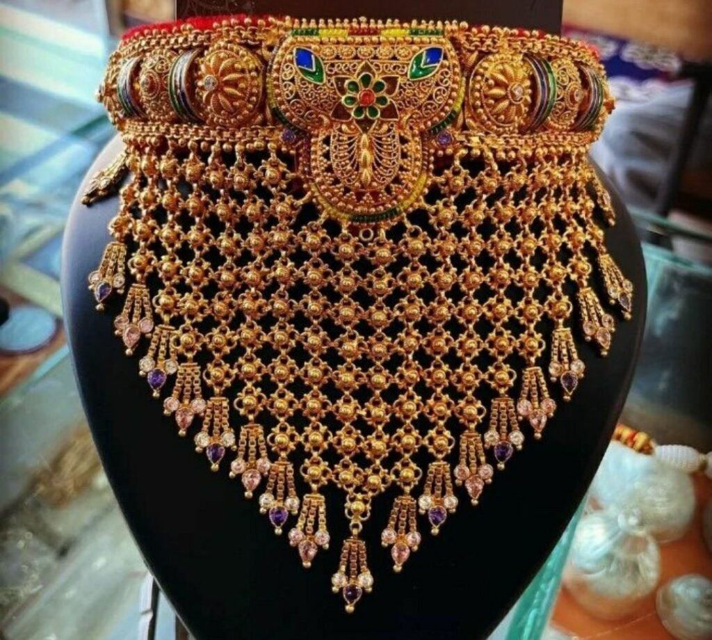 ये एक नई डिजाइन में गले के हार सेट की डिजाइन है। आजकल इस तरह की डिजाइन को बहुत ही ज्यादा पसंद किया जा रहा है, इस डिजाइन को आप कम से कम 70 ग्राम में बनवा सकते हैं, यह डिजाइन हर किसी को बहुत ही ज्यादा पसंद आ रही है,