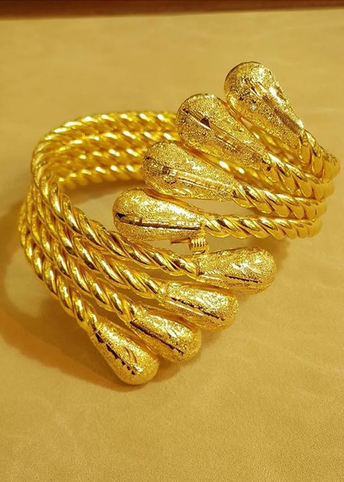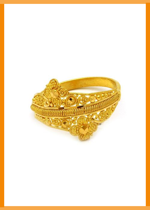 इस स्वर्णिम अंगूठी लंबी होने के बजाएँ चौड़ाई में अधिक है, जिसके कारण इसकी चमक दूर से ही देखी जा सकती है। जलेबी की तरह गोल-गोल डिज़ाइन इसके आकर्षण को अधिक बढ़ा रहे हैं।