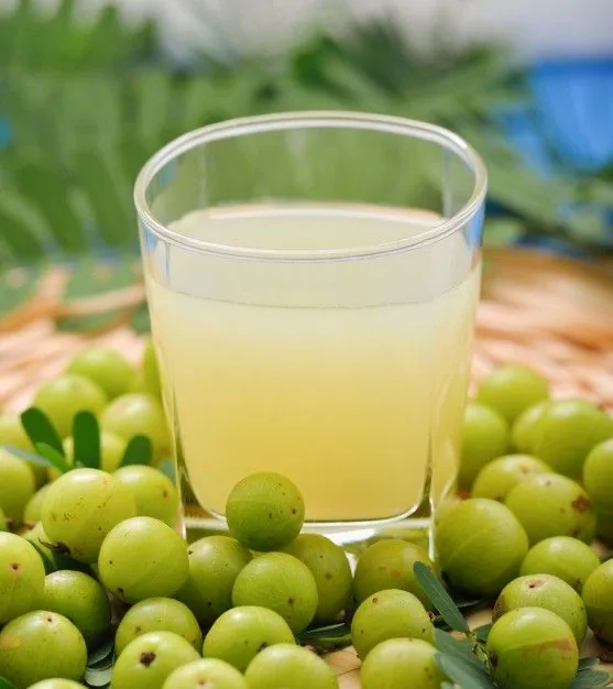 3. आंवला जूस (Amla Juice): आंवला विटामिन C का अच्छा स्रोत है और यह त्वचा को स्वस्थ रखने में मदद करता है।