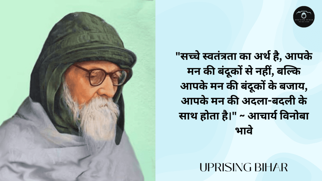 - “सच्चे स्वतंत्रता का अर्थ है, आपके मन की बंदूकों से नहीं, बल्कि आपके मन की बंदूकों के बजाय, आपके मन की अदला-बदली के साथ होता है।”~ आचार्य विनोबा भावे