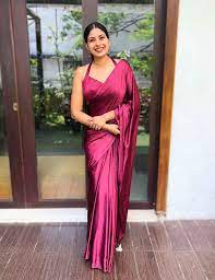 साटन साड़ी लुक
