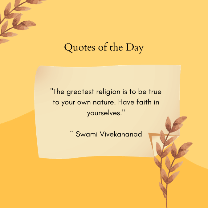 “The greatest religion is to be true to your own nature. Have faith in yourselves.” ~ Swami Vivekananad
