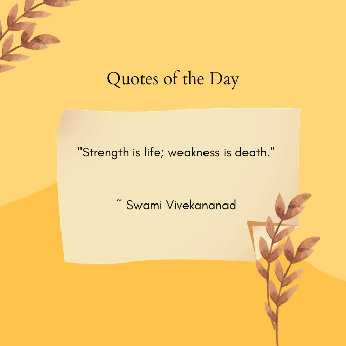 “Strength is life; weakness is death.” ~ Swami Vivekananad