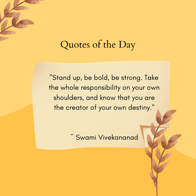 “Stand up, be bold, be strong. Take the whole responsibility on your own shoulders, and know that you are the creator of your own destiny.” ~ Swami Vivekananad