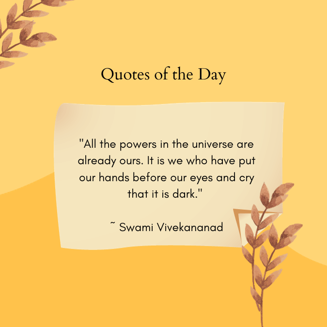 “All the powers in the universe are already ours. It is we who have put our hands before our eyes and cry that it is dark.” ~ Swami Vivekananad