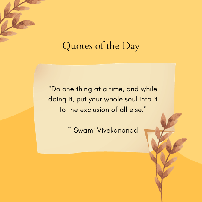 “Do one thing at a time, and while doing it, put your whole soul into it to the exclusion of all else.” ~ Swami Vivekananad