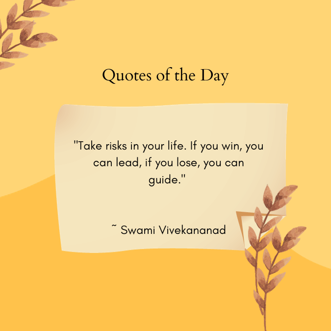 “Take risks in your life. If you win, you can lead, if you lose, you can guide.” ~ Swami Vivekananad