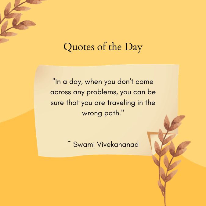 “In a day, when you don’t come across any problems, you can be sure that you are traveling in the wrong path.” ~ Swami Vivekananad