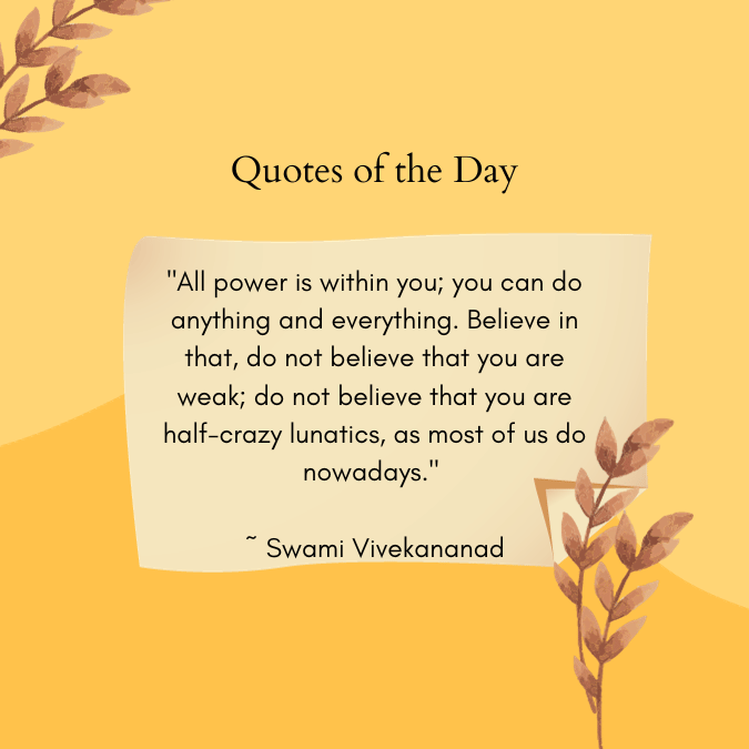 “All power is within you; you can do anything and everything. Believe in that, do not believe that you are weak; do not believe that you are half-crazy lunatics, as most of us do nowadays.” ~ Swami Vivekananad